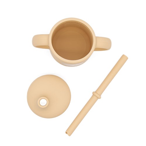 Kubek został zaprojektowany z myślą o dzieciach – miękka i gładka powierzchnia sprawia, że picie staje się przyjemnością, a elastyczność materiału zapewnia trwałość i odporność na uderzenia, upadki i codzienne przygody przy stole. Ergonomiczne uchwyty ułatwiają chwytanie małym rączkom, a szczelna pokrywka ze słomką zapobiega przypadkowemu rozlewaniu.