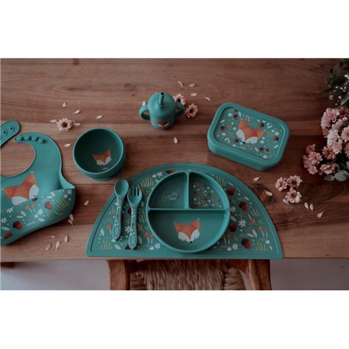 Skompletuj także inne silikonowe akcesoria z liskiem dla maluszka: miskę, zestaw sztućców, kubek, matę/podkładkę, śliniaczek. A dla starszaka znajdziesz plecaki, torby terminczne, butelki i bidony, lunchboxy i inne akcesoria niezbędne już dla przedszkolaka.