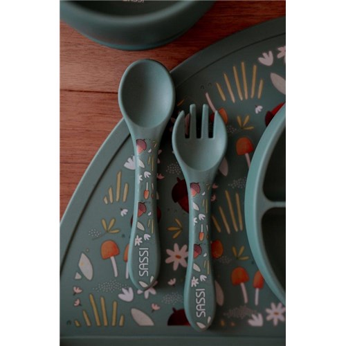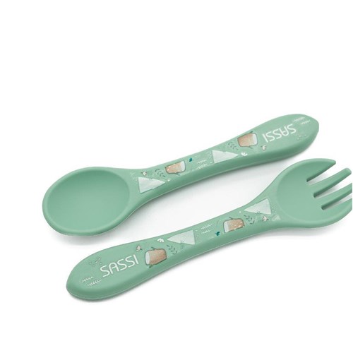 Sztućce SASSI to bezpieczny, estetyczny i funkcjonalny zestaw, który wspiera dziecko w nauce samodzielnego jedzenia od pierwszych dni rozszerzania diety.