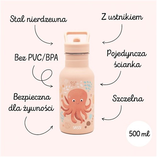 SB1099 Butelka na wodę bidon 500ml Ośmiornica SASSI ze stali nierdzewnej