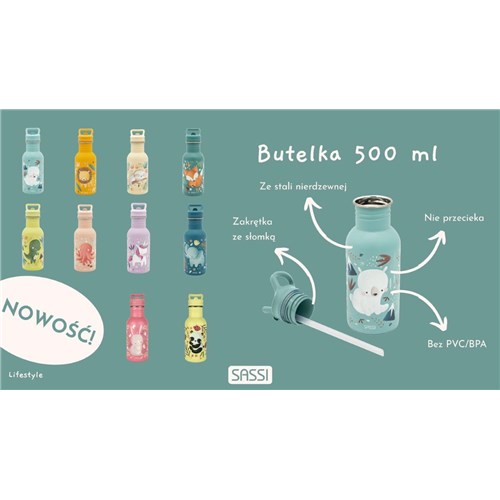 SB2287 Butelka na wodę bidon 500ml Panda SASSI ze stali nierdzewnej
