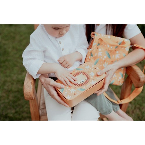 Pojemnik jest ozdobiony motywem odważnego Lwa, który stanie się wspaniałym towarzyszem codziennych przygód Twojego dziecka!