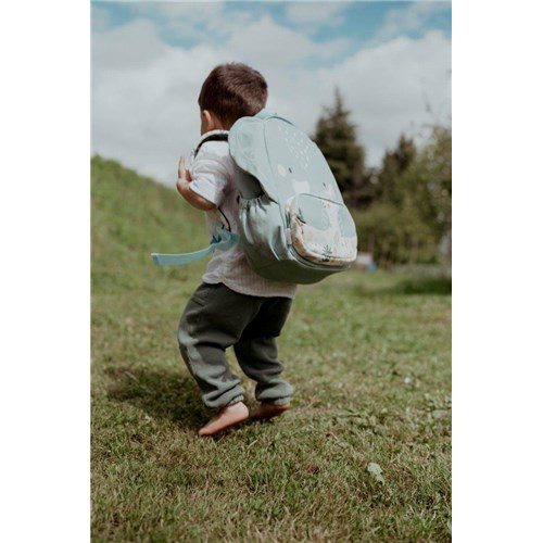 Plecak jest wykonany z miękkiej i oddychającej bawełny, łączy w sobie komfort, trwałość i estetykę, jest bardzo pojemny – bez problemu zmieści zeszyty, książki, termos czy śniadaniówkę. Posiada praktyczną przednią kieszeń oraz 2 boczne kieszenie na butelkę, wewnętrzną etykietę na imię oraz solidny uchwyt, który pozwala na łatwe zawieszenie na haczyku w szatni czy klasie. Dzięki zapięciu na suwak i odpowiednio wyprofilowanym ramiączkom z dodatkowym pasem piersiowym dziecko może komfortowo nosić go każdego dnia, zarówno do szkoły, jak i na weekendowe wycieczki.