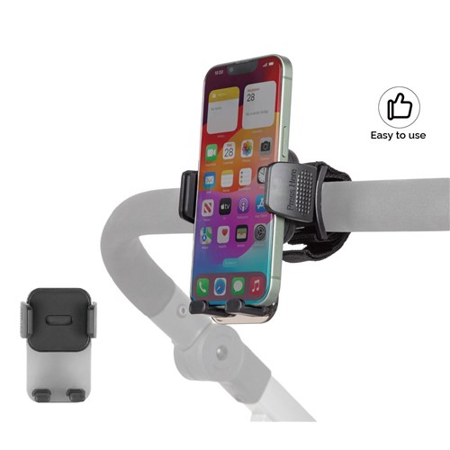 Uchwyt na telefon komórkowy holenderskiej marki Titanium Baby to jeden z gadżetów, który okaże się niezbędny podczas spacerów z wózkiem. Jest idealny do odwrócenia uwagi dziecka, kiedy płacze, lub po prostu do trzymania telefonu w zasięgu ręki, gdy jest potrzebny. Jest wykonany z wysokiej jakości tworzywa premium. Charakteryzuje go łatwy montaż, można przymocować do kierownicy przed sobą lub do barierki wózka czy też wykorzystać podczas jazdy rowerem, aby móc kierować się zgodnie z nawigacją. Zapinany jest na rzepy, które można łatwo założyć i zdjąć. Telefon mocuje się do uchwytu za pomocą dwóch klipsów jednym szybkim kliknięciem. Antypoślizgowe zaciski rozciągają się dzięki czemu telefon stabilnie trzyma się uchwytu. Można obracać o 360 stopni.