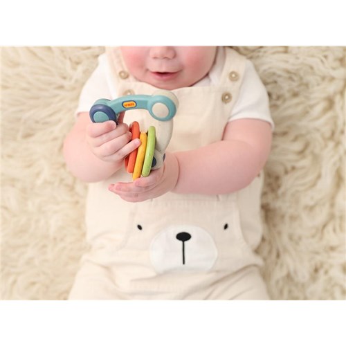 Kolorowa i radosna trójkątna grzechotka TOLO Bio to zabawka, która zapewni maluchowi mnóstwo radości i przyjemności w trakcie odkrywania świata. Wykonana z biodegradowalnego plastiku Bio, jest bezpieczna do wkładania do buzi, co jest naturalnym etapem rozwoju w tym wieku. Grzechotka jest odpowiednia dla dzieci od 3 m-ca życia, zachęcając do zabawy i angażując zmysły. Dzięki grzechoczącym elementom, dziecko będzie rozwijać zdolności słuchowe, a także ćwiczyć koordynację ręka-oko oraz zdolności motoryczne, takie jak dotykanie i chwytanie. Jest to idealna zabawka wspomagająca rozwój wczesnych umiejętności, jednocześnie w pełni bezpieczna dla maluchów.