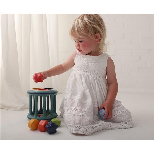 Wspaniała zabawka, która łączy w sobie funkcje sortera kształtów i zabawki do toczenia! To wyjątkowy sorter, który maluchy mogą toczyć po podłodze lub stole. Górna i dolna część zabawki łatwo się odkręcają, co umożliwia szybkie wyjęcie klocków. Każdy kształt jest również grzechotką, dodając dodatkową radość podczas zabawy.