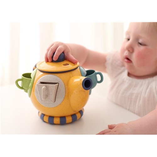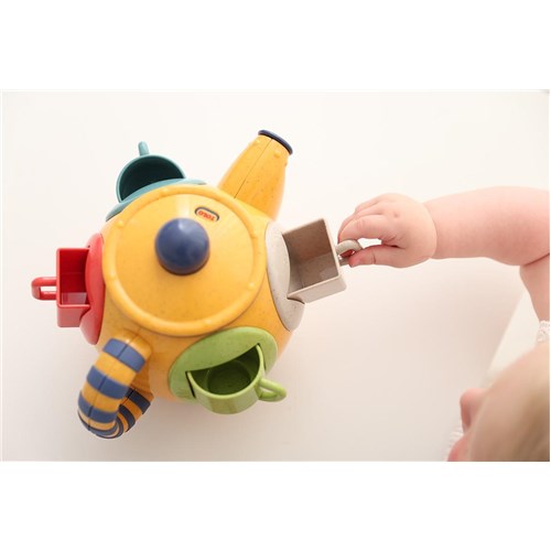 Wyjątkowy czajniczek, który pełni funkcję sortera kształtów oraz mini zestawu do herbatki! W zestawie znajdują się 4 mini filiżanki, które można umieścić wewnątrz dzbanka, dopasowując je do odpowiednich otworów. Zabawka zachęca dziecko do nauki poprzez zabawę, rozwijając zdolności poznawcze i manualne. Po zdjęciu pokrywki, filiżanki można łatwo wyjąć. Dodatkowo, przezroczysty wkład można napełnić wodą, tworząc prawdziwą herbatkę (zabawka nie jest odpowiednia do gorących płynów). Idealna do zabawy w domu, rozwijająca wyobraźnię malucha! Poza tym silikonowe wykończenie spodu i rączki zapobiega przesuwaniu się i wspomaga uchwyt.