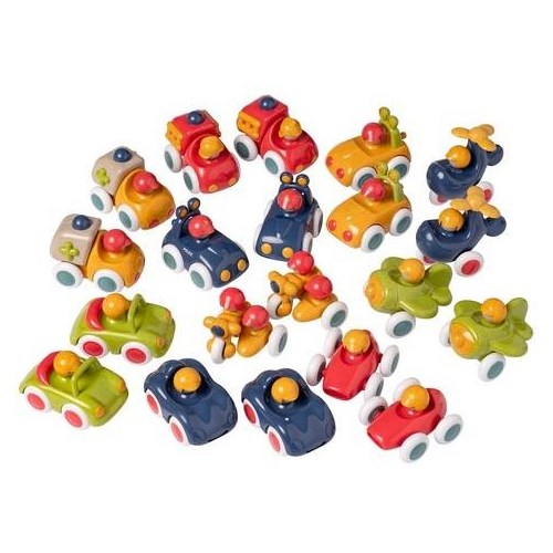 Są to pierwsze małe pojazdy dla maluszka już od 6 m-ca życia i dzięki nim dzieci mogą doskonalić swoje umiejętności motoryczne, używać wyobraźni, rozwijać koordynację ręka-oko i ćwiczyć pamięć. Główki ludzików obracają się, opony kół są z miękkiego silikonu. Zabawki zostały zaprojektowane z myślą o trwałości i wykonana z wysokiej jakości materiałów, z nowoczesnych bioplastików ze słomu pszennej/z łodyg pszenicy, z tworzywa ABS. Jasne kolory i wyraźne kształty ułatwiają dzieciom zabawę i naukę. Zabawka oferuje korzyści edukacyjne i zachęca dzieci do kreatywnego rozwoju.