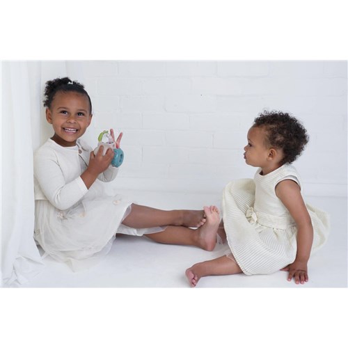 noszenia, idealny do trzymania przez małe rączki. Delikatne dźwięki – grzechoczący
