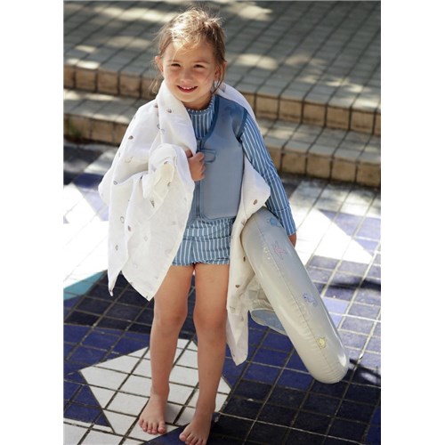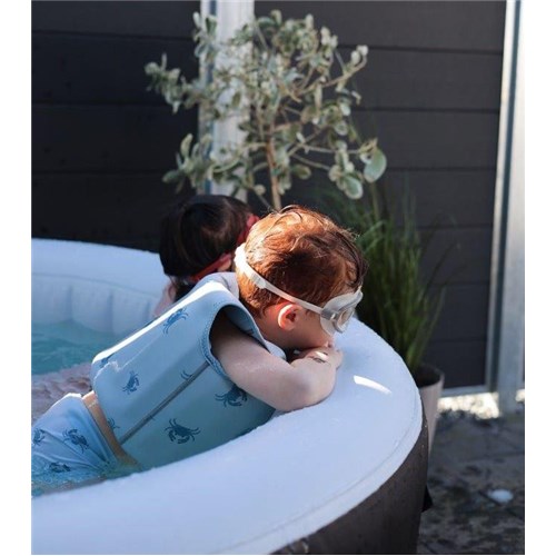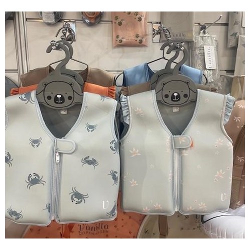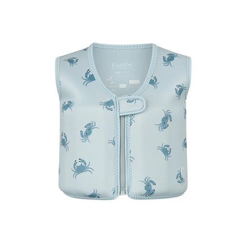 Neoprenowa kamizelka wypornościowa do pływania marki Vanilla Copenhagen dla dzieci w błękitnym kolorze w urocze kraby sprawdzi się idealnie podczas nauki pływania i zabawy, aby maluchy w kamizelce mogły pływać jak rybki w wodzie. Kamizelka zwiększa komfort i bezpieczeństwo dziecka w basenach, w parkach wodnych, nam morzem i są to podstawowe cele i elementy kolekcji kąpielowej Vanilla Copenhagen. Kamizelka posiada osiem wewnętrznych pływaków. Zapewniają one pływalność dostosowaną do rozmiaru, potrzeb i umiejętności pływackich dziecka. Wyporność można regulować, wyjmując pływaki z kieszeni wewnątrz kamizelki. Gdy dziecko znajdzie się na odpowiednim poziomie, będzie mogło z łatwością kontrolować swoją pływalność.