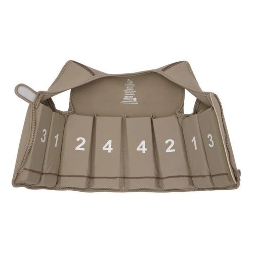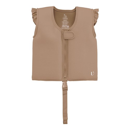 Kamizelka jest wykonana z miękkiego neoprenu 2 mm, z wytrzymałą warstwą nylonu po bokach, mocnymi szwami i mocnym zamkiem YKK oraz z zapięciem na rzep, aby dziecko nie mogło jej otworzyć. Kamizelka neoprenowa zwiększa komfort i bezpieczeństwo w wodzie oraz chroni przed słońcem (SPF 50+)