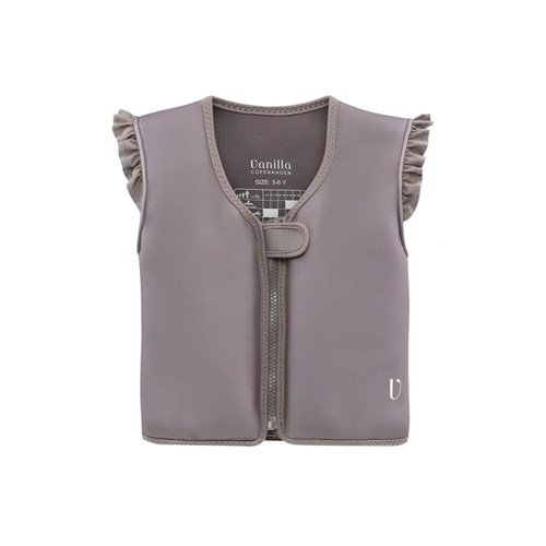 Neoprenowa kamizelka wypornościowa do pływania marki Vanilla Copenhagen dla dzieci w pięknym kolorze ciemno beżowym z delikatną falbanką na ramionach i cudownymi łabędziami królewskim na plecach, sprawdzi się idealnie podczas nauki pływania i zabawy, sprawdzi się idealnie podczas nauki pływania i zabawy, aby dzieci w kamizelce mogły pływać jak rybki w wodzie. Kamizelka zwiększa komfort i bezpieczeństwo dziecka w basenach, w parkach wodnych, nam morzem czy na kajakach z rodzicami i są to podstawowe cele i elementy kolekcji kąpielowej Vanilla Copenhagen. Kamizelka posiada osiem wewnętrznych pływaków. Zapewniają one pływalność dostosowaną do rozmiaru, potrzeb i umiejętności pływackich dziecka. Wyporność można regulować, wyjmując pływaki z kieszeni wewnątrz kamizelki. Gdy dziecko znajdzie się na odpowiednim poziomie, będzie mogło z łatwością kontrolować swoją pływalność. Kamizelka dla starszych dzieci sprawdzi się też np. na kajakach, łódkach itp.