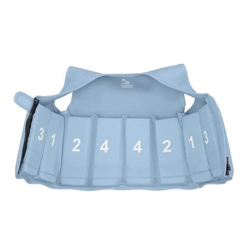 Kamizelka dostępna takze w rozmiarze dla dzieku od 1 do 3 lat - 11-20 kg: osiem wyjmowanych pływaków, zamek błyskawiczny YKK i regulowany pasek bezpieczeństwa między nogami dla idealnego dopasowania oraz w rozmiarze 3-6 lat.