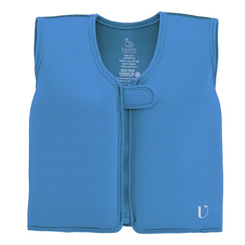 Neoprenowa kamizelka wypornościowa do pływania marki Vanilla Copenhagen dla dzieci w pięknym kolorze lazurowego błękitu, sprawdzi się idealnie podczas nauki pływania i zabawy, aby maluchy w kamizelce mogły pływać jak rybki w wodzie. Kamizelka zwiększa komfort i bezpieczeństwo dziecka w basenach, w parkach wodnych, nam morzem i są to podstawowe cele i elementy kolekcji kąpielowej Vanilla Copenhagen. Kamizelka posiada osiem wewnętrznych pływaków. Zapewniają one pływalność dostosowaną do rozmiaru, potrzeb i umiejętności pływackich dziecka. Wyporność można regulować, wyjmując pływaki z kieszeni wewnątrz kamizelki. Gdy dziecko znajdzie się na odpowiednim poziomie, będzie mogło z łatwością kontrolować swoją pływalność.