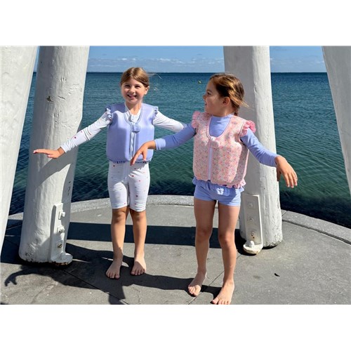 Kamizelka jest wykonana z miękkiego neoprenu 2 mm, z wytrzymałą warstwą nylonu po bokach, mocnymi szwami i mocnym zamkiem YKK oraz z zapięciem na rzep, aby dziecko nie mogło jej otworzyć. Kamizelka neoprenowa zwiększa komfort i bezpieczeństwo w wodzie oraz chroni przed słońcem (SPF 50+)